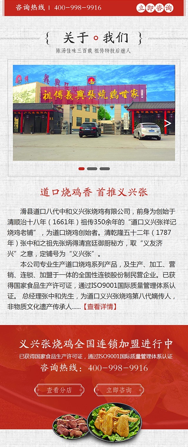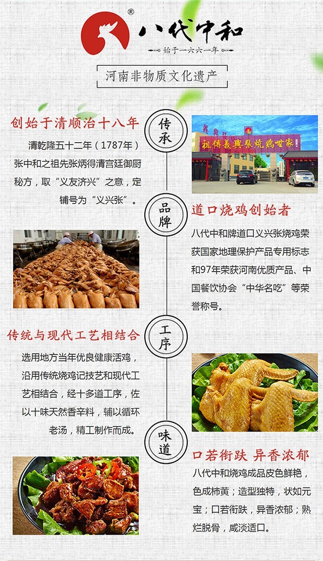 本公司生產(chǎn)道口燒雞系列產(chǎn)品,及生產(chǎn)、加工、營銷、連鎖、加盟于一體的全國性連鎖股份制民營企業(yè)。已獲得國家食品生產(chǎn)許可證,通過ISO9001國際質(zhì)量管理體系認(rèn)證。