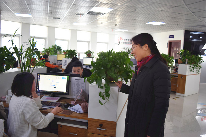 劉亞芳總監(jiān)為領(lǐng)導(dǎo)介紹公司各個(gè)部門(mén)中的職能與詳細(xì)工作,公司中各個(gè)工作崗位上都有黨員的身影,隨處可見(jiàn)黨員示范崗,
