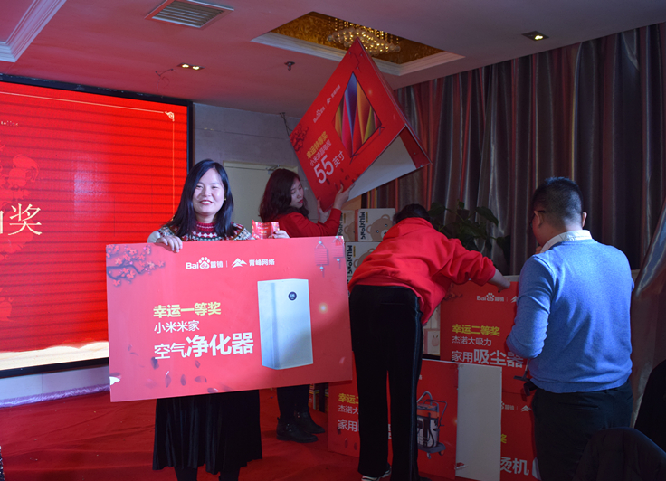簽到篇 看到嗎?大獎已經準備好了??! 美酒美食上桌 簽到了小伙伴們!! 一聲簽到了,瞬間排起長龍! 美麗帥氣的主持人準備開場! 2020,恭喜發(fā)財,萬事如意,笑口常開! 大獎非你莫“鼠”! 節(jié)目篇 一聲開門紅,開啟節(jié)目篇,將答謝會的熱情推向波高潮!祝福大家來年紅紅火火??! “歌神”一亮相,小迷妹們立刻集結,演唱會模式瞬間開啟, oh my god!唱的也太好聽了吧! 營銷部小品《郵輪風云》,完全顛覆了日常形象, 妥妥的小品“扛把子”誕生了! 吉他彈唱一首《晴天》,把我們瞬間帶進美好的校園愛情的回憶,青峰人真是太多才多藝! 百度推廣部帶我們一起左邊畫個龍,右邊畫一道彩虹,兩個食指就像兩只穿天猴,指向閃耀的燈球!??! 游戲篇 愛的魔力轉圈圈,一條大紅布圈起明年的好運來! 氣球運杯,你來我往,一會兒運氣爆棚! 好運連連,一件大T恤,連接起你我他!happy!! 篇 千呼萬喚篇即將來襲,你可能不知道,大家因為緊張的手都在顫抖! 然而,你可能想象不到,今年的大獎在輪就被抽走了?。?!臺下的小伙伴們,瞬間心死~~~ 他們其中有人歇完產假回來就上了一天班,就拿了一等獎, 還有人前一天晚上說如果我得了大獎怎樣怎樣,然后夸下的??诰屯蝗粚崿F了............ 看到特等獎的劉冉了嗎?我們已經決定組團去他家看電視了........ 哈哈哈哈! 頒獎片 付出總會有收回,小伙伴們來年繼續(xù)加油哇! 等一下,還有我們的神秘大禮 桶桶都旺! 祝愿大家統(tǒng)統(tǒng)都旺啊! 王總致祝酒詞希望大家凝心聚力,再創(chuàng)輝煌! 開啟今天的晚宴嘉年華! 讓我們共同舉杯!迎接2020! 后,祝福大家 鼠年送你大元寶,財源滾滾往家跑; 鼠年送你福滿多,和家幸福好運來; 鼠年送你紅綿襖,身上暖暖心里暖; 鼠年得到祝福多,一年順心萬事和! 新的一年,非你莫“鼠”